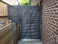 100mm slat aluminium single access gate poweder coated black