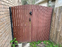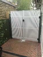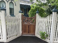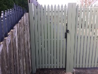 Tall rounded picket single access gate merbau timber painted