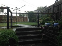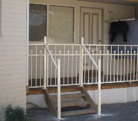 Single access made with exposed rosewood timber with fixed wing fence powder coated black